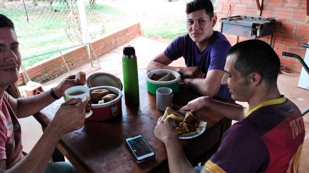 Ontbyt, elke oggend, stiptelik agt uur. Baie min werkers, dit is nou die dele waar met kontant gewasse (Waar kom daardie benaming in die landbou vandaan?) geboer word, soja, mielies, koring ens ens, bly op die plase. Behalwe in die beesstreke, waar die estancias (plase) groot is, bly die werkers, op die plase. Dus, hier in ons omgewing, bring die werkers, elke oggend, hulle ontbyt, van die huis af. Indien ek, in die nabyheid, waar hulle ontbyt eet, sou wees, word ek gereeld, genooi om iets, saam te eet of ‘n beker cocido, saam te drink.