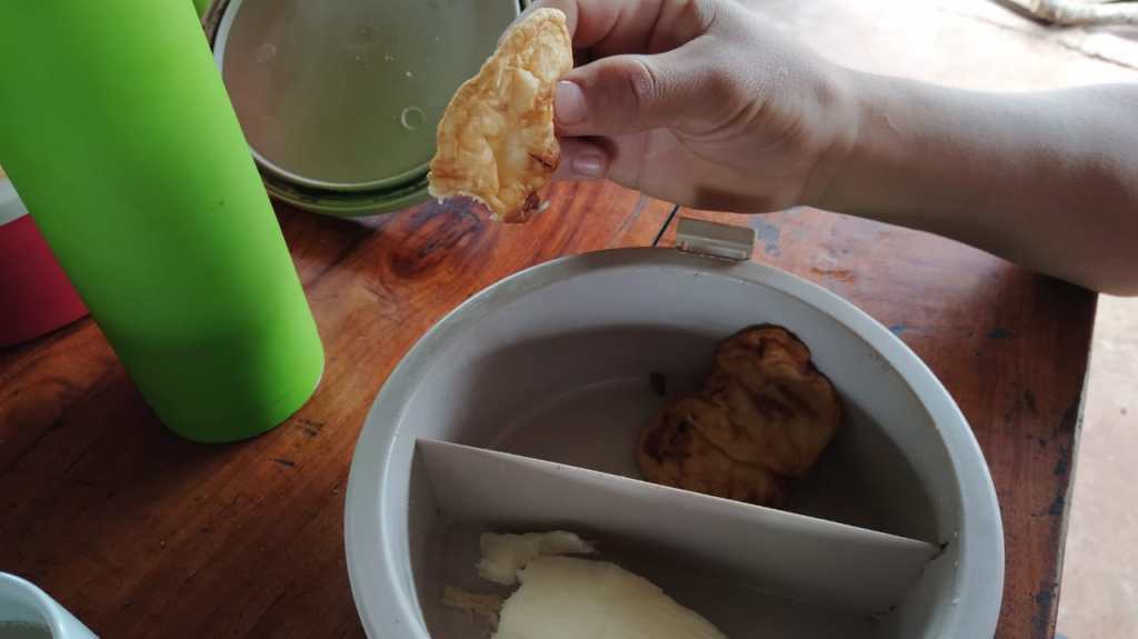Die populêre en veelsydige kos is tortillas, nie te vergelyk met die Mexicaanse, selfde naam, voedsel nie. Maklik en reg vir ontbyt of eintlik enige ete. ‘n Volle maaltyd, of saam met soyo en/of vori vori (soppe) of sommer om te proe, as die hongerpyne knaag. Byna soos ‘n pannekoekdeeg. Eiers, melk, kaas, meel, gekerfde blaaruie, olie en sout. Die voordeel van tortilla, is dat engiets, wat oorgebly het, van ‘n vorige ete, daarby gemeng kan word. Dus, word niks vermors nie.